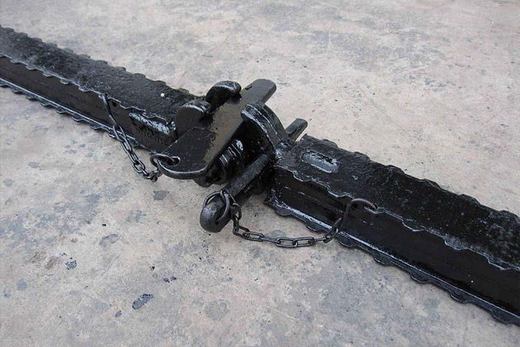 鉸接頂梁是煤礦巷道中常用的支護頂梁,其長度比較短,帶有鉸接連接頭,它可以與帶有鉸接頂蓋的各種類型的單體液壓支柱配合使用組成金屬支架,供煤礦的水平及緩傾斜回采工作面支護使用。鉸接頂梁能懸臂支護工作面輸送機上面的頂板,使煤壁與支柱間有較大的空間,從而為采用新型采煤機械和可彎曲輸送機,實現(xiàn)采煤機械化提供條件。