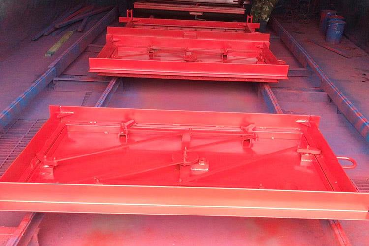 避難硐室密閉門使用對(duì)稱的方式進(jìn)行安裝,它的每一個(gè)安裝件都是使用鋼材料來焊接成的。避難硐室密閉門的門扇是由井字結(jié)構(gòu)來進(jìn)行焊接的,反風(fēng)的主要裝置是采用鋼管來插拴的,安裝的時(shí)候在合頁(yè)處涂上潤(rùn)滑油,保證使用的靈活性。斜風(fēng)井防爆門關(guān)門時(shí),各部件反向擺動(dòng),到關(guān)閉狀態(tài)時(shí)成矩形狀態(tài)。